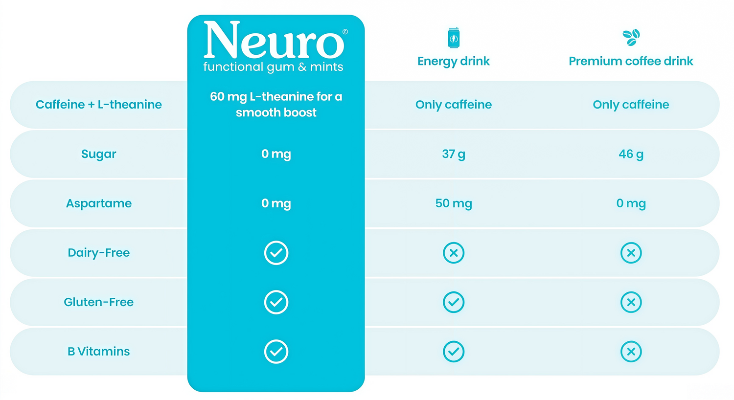 Yes, Neuro Gum can be a helpful tool for boosting focus and mental energy during extended periods of work, studying or any activity requiring sustained concentration. The combination of natural caffeine, L-theanine, and B vitamins is designed to provide a calm, alert state without the jitters or crash of excess caffeine consumption. Many students, professionals and athletes use Neuro Gum to help them perform at their best cognitively. As with any caffeinated product, be mindful of your individual tolerance and avoid consuming too close to bedtime if you are sensitive to its effects.*